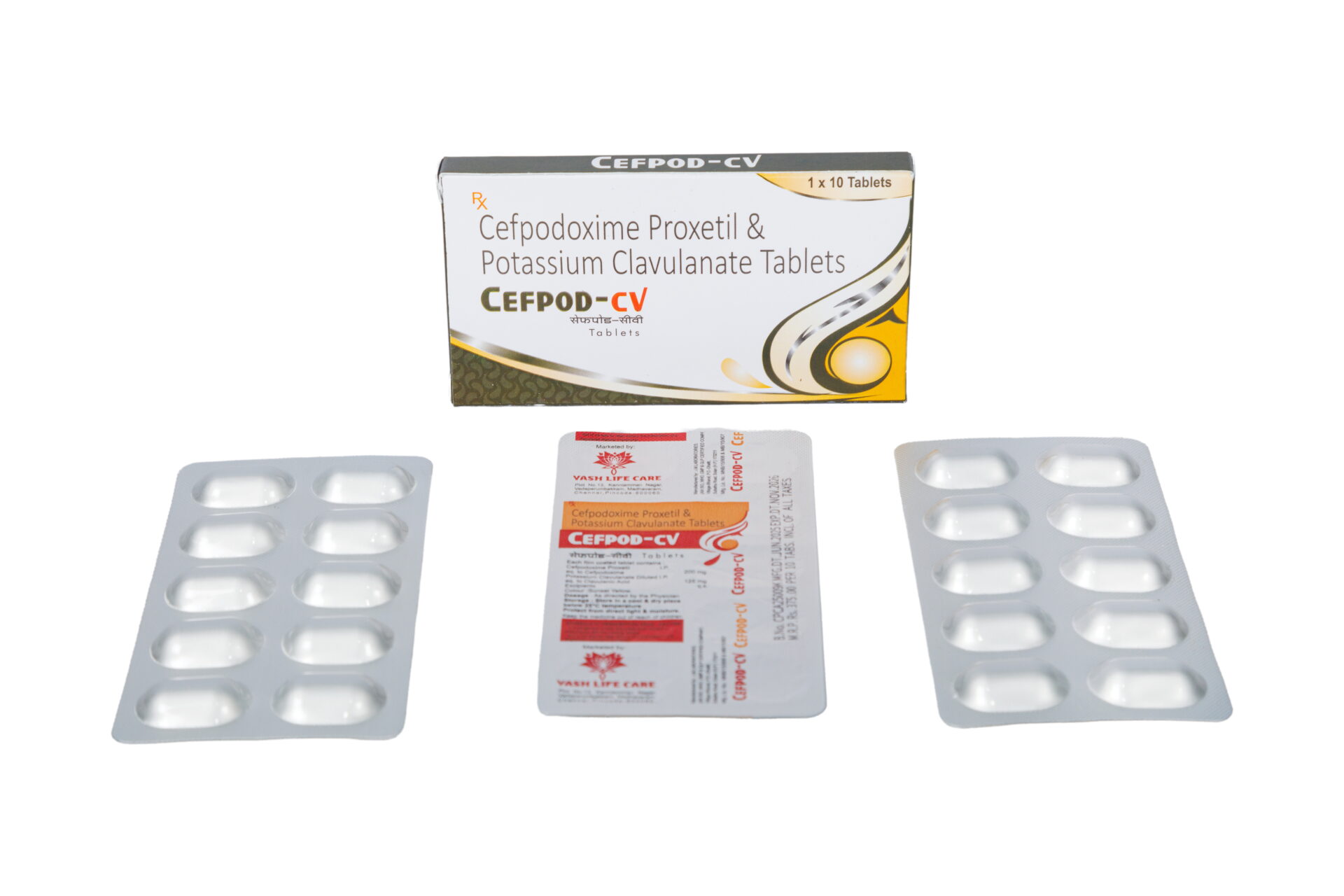 Cefpod-CV Tablets : A combination of two medicines: Cefpodoxime Proxetil and Clavulanic Acid. Cefpodoxime Proxetil is an antibiotic. It works by preventing the formation of the bacterial protective covering which is essential for the survival of bacteria. Clavulanic Acid is a beta-lactamase inhibitor which reduces resistance and enhances the activity of Cefpodoxime Proxetil against bacteria.