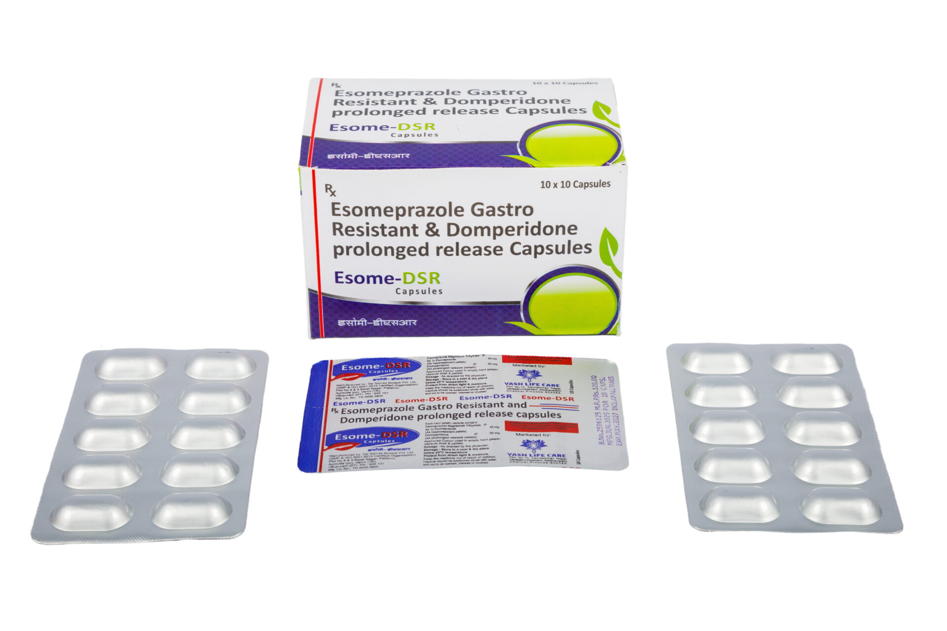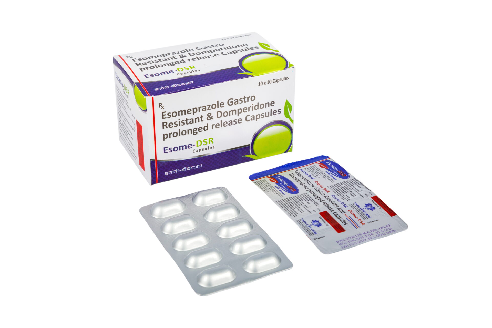 Esome-DSR Capsules : Esomeprazole (40mg) and Domperidone (30mg) Prolonged Release (PR) capsules are a combination therapy used primarily to treat acid-related gastrointestinal disorders, especially when simple acid suppression is insufficient.