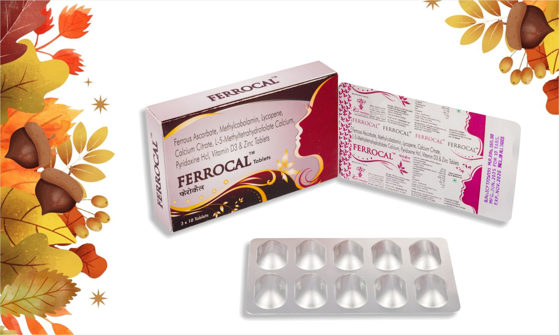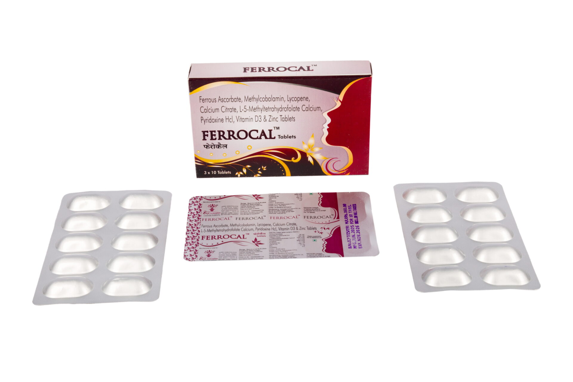Ferrocal Tablets (Ferrous Ascorbate, Methylcobalamin, Lycopene, Calcium Citrate, L-5-Methyltetrahydrofolate Calcium, Pyridoxine Hcl, Vitamin D3 & Zinc)