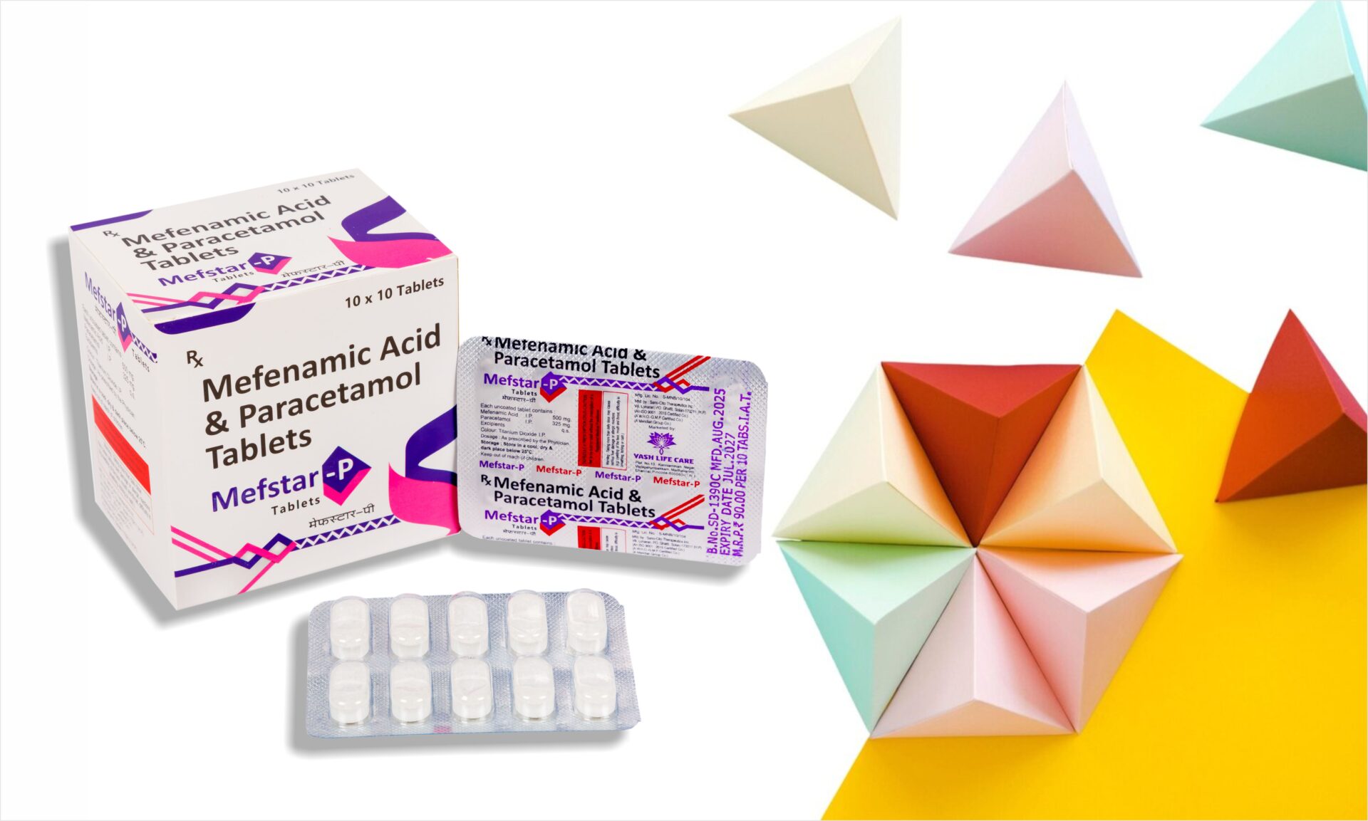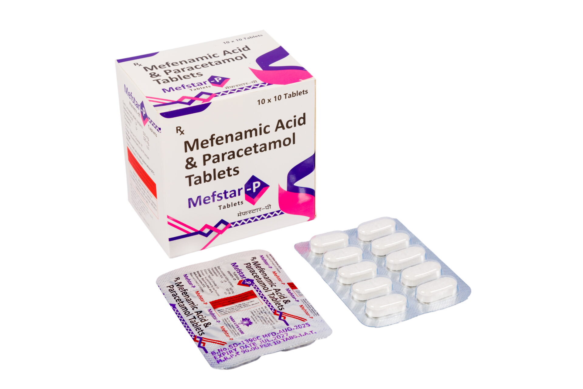 Mefstar-P Tablets works by blocking the release of certain chemical messengers that cause fever, pain and inflammation (redness and swelling).