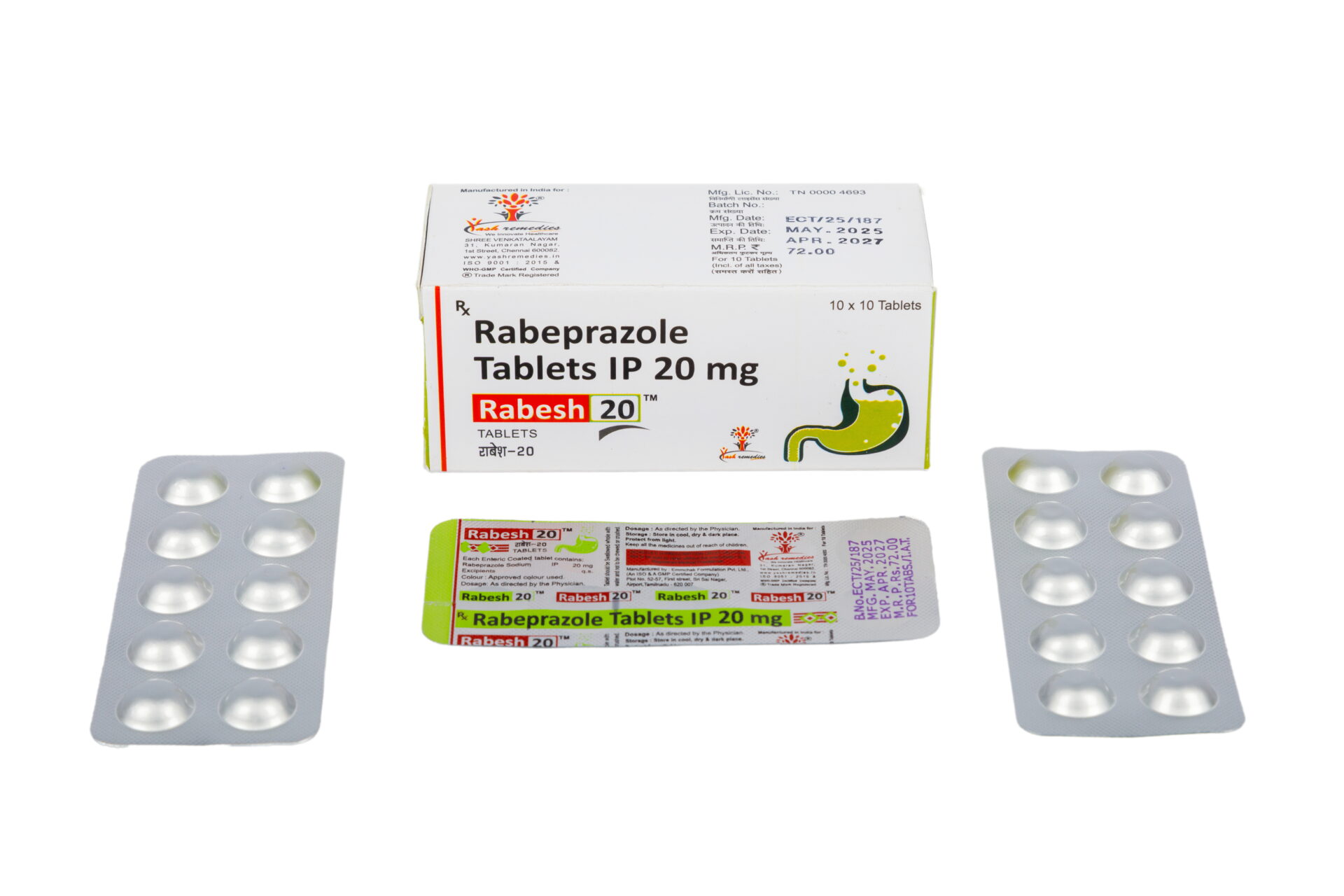 Rabesh-20 Tablets (Rabeprazole 20mg tablets) used to reduce the amount of acid produced in the stomach. By inhibiting the H+/K+ ATPase enzyme system (the “acid pump”) at the secretory surface of the stomach lining, it effectively treats various acid-related conditions and allows the digestive tract to heal.