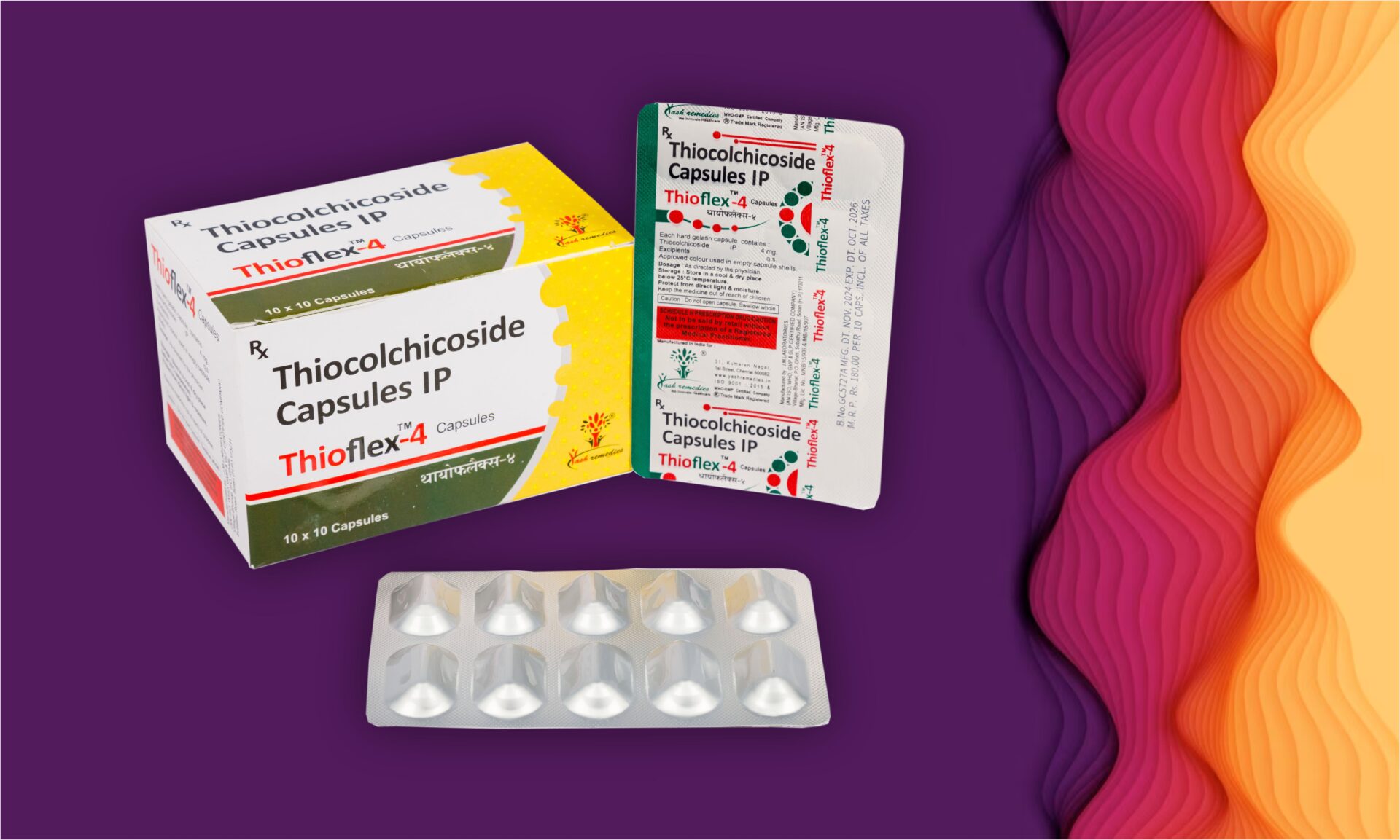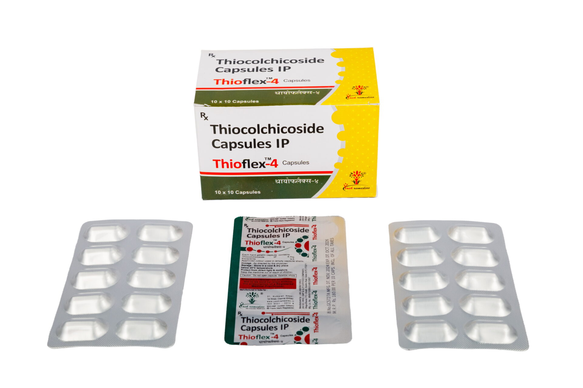 Thioflex-4 Capsules is a muscle relaxant used to relieve muscle spasms, stiffness, and pain caused by conditions like sciatica, back pain, and muscle injuries. It works by mimicking the action of Gamma-Aminobutyric Acid (GABA), a natural chemical that calms nerve activity and promotes muscle relaxation.
