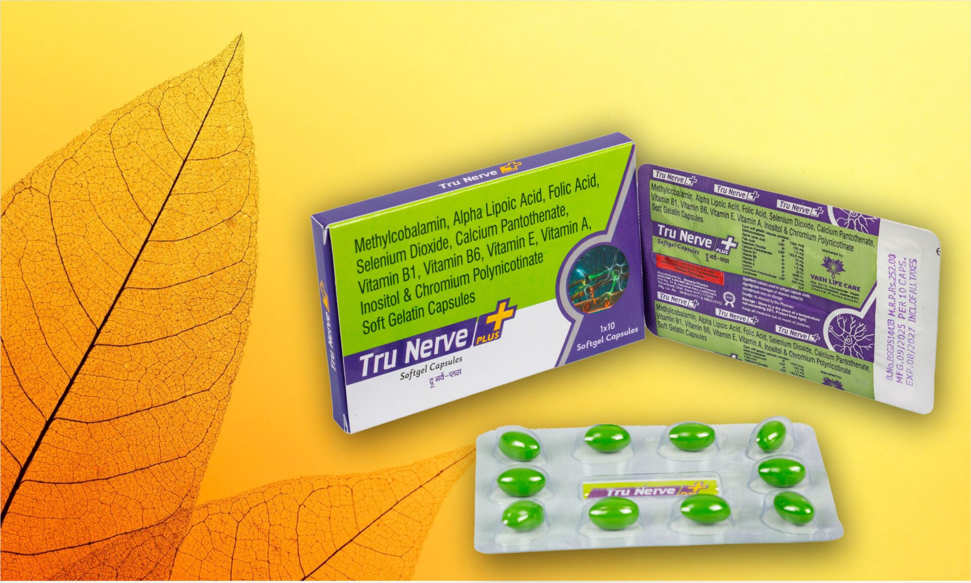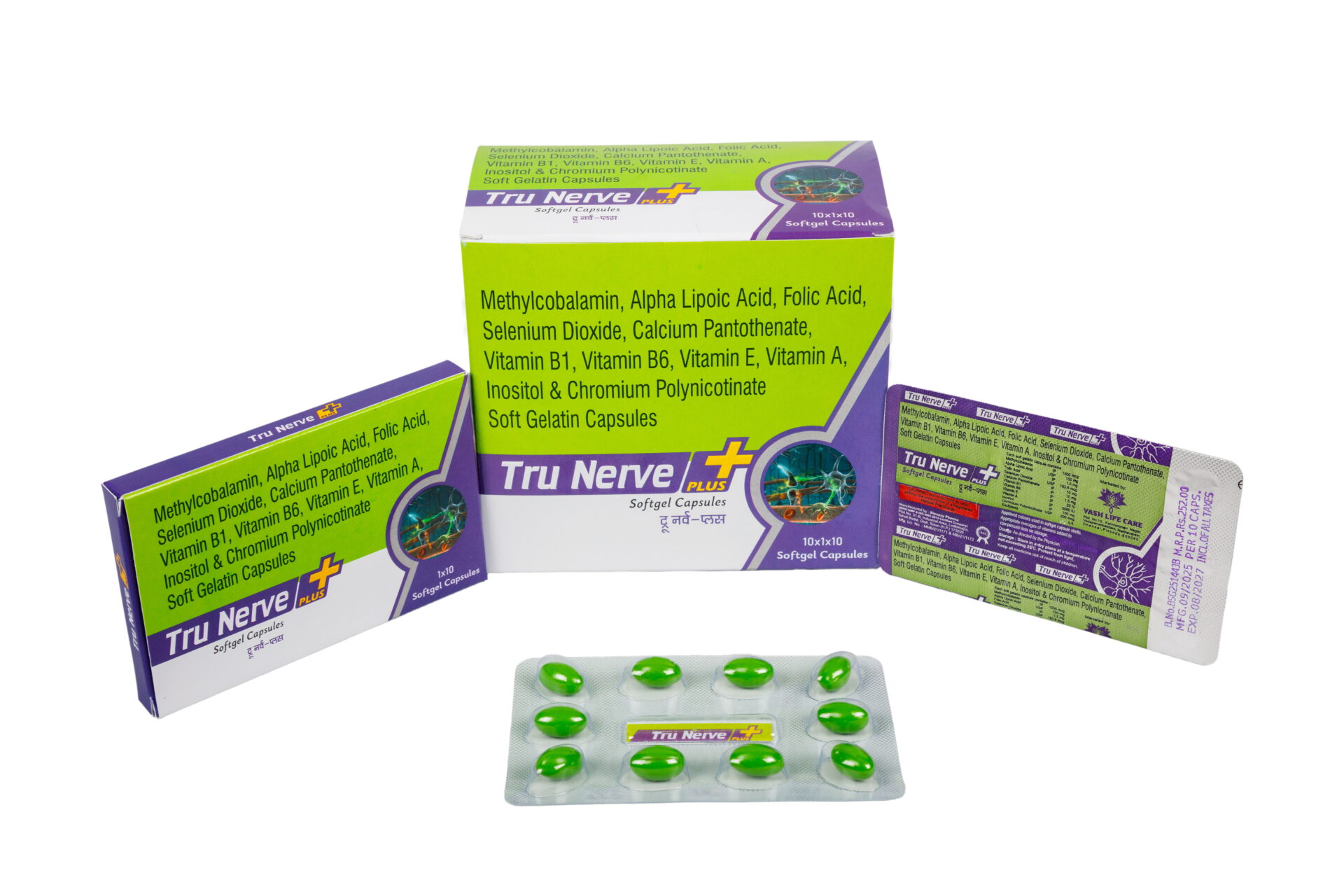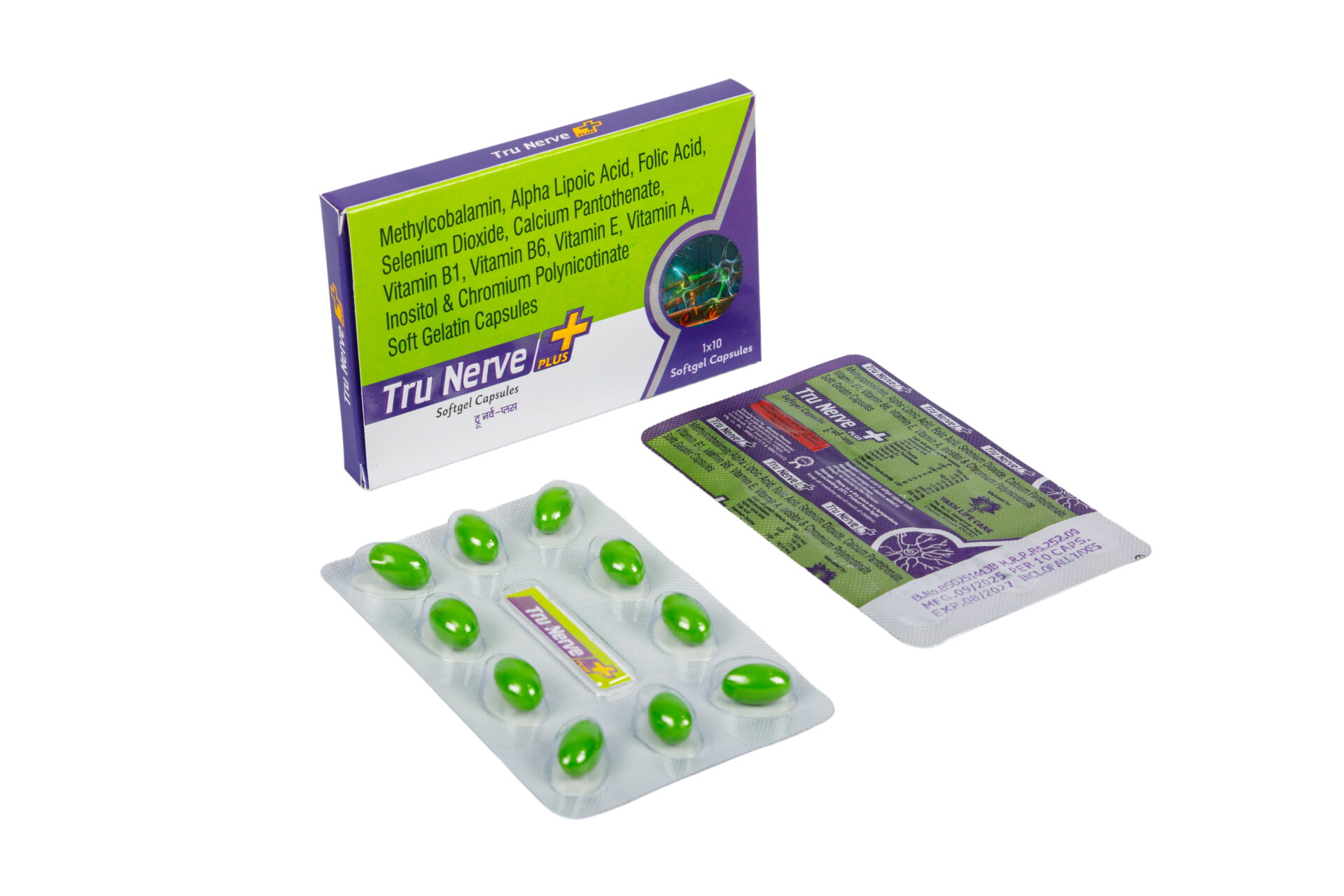 Tru Nerve Plus Softgel Capsules (Methylcobalamin, Alpha Lipoic Acid, Folic Acid, Selenium Dioxide, Calcium Pantothenate, Vitamin B1, Vitamin B6, Vitamin E, Vitamin A, Inositol & Chromium Polynicotinate)